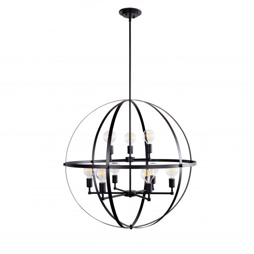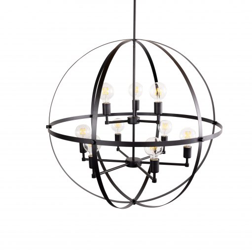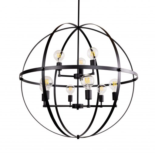Cortland – 9 Light 2 Teir Orb Pendant in Black