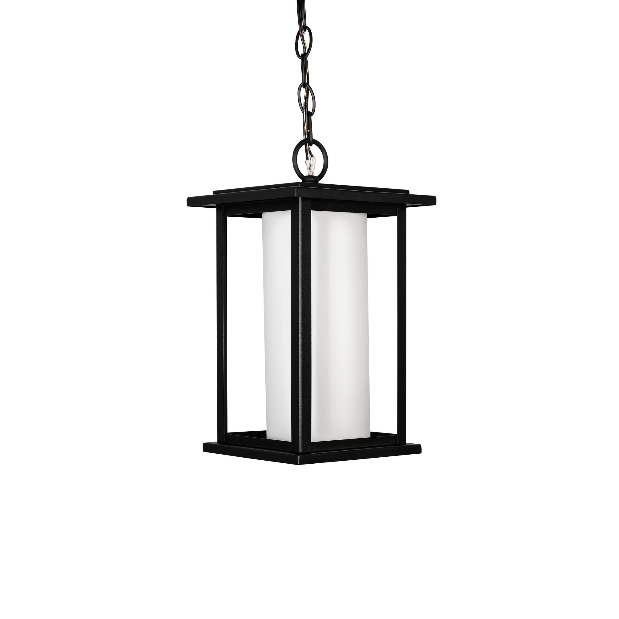 Harborview – Exterior Chain Hung Lanter in Black with Frosted Glass