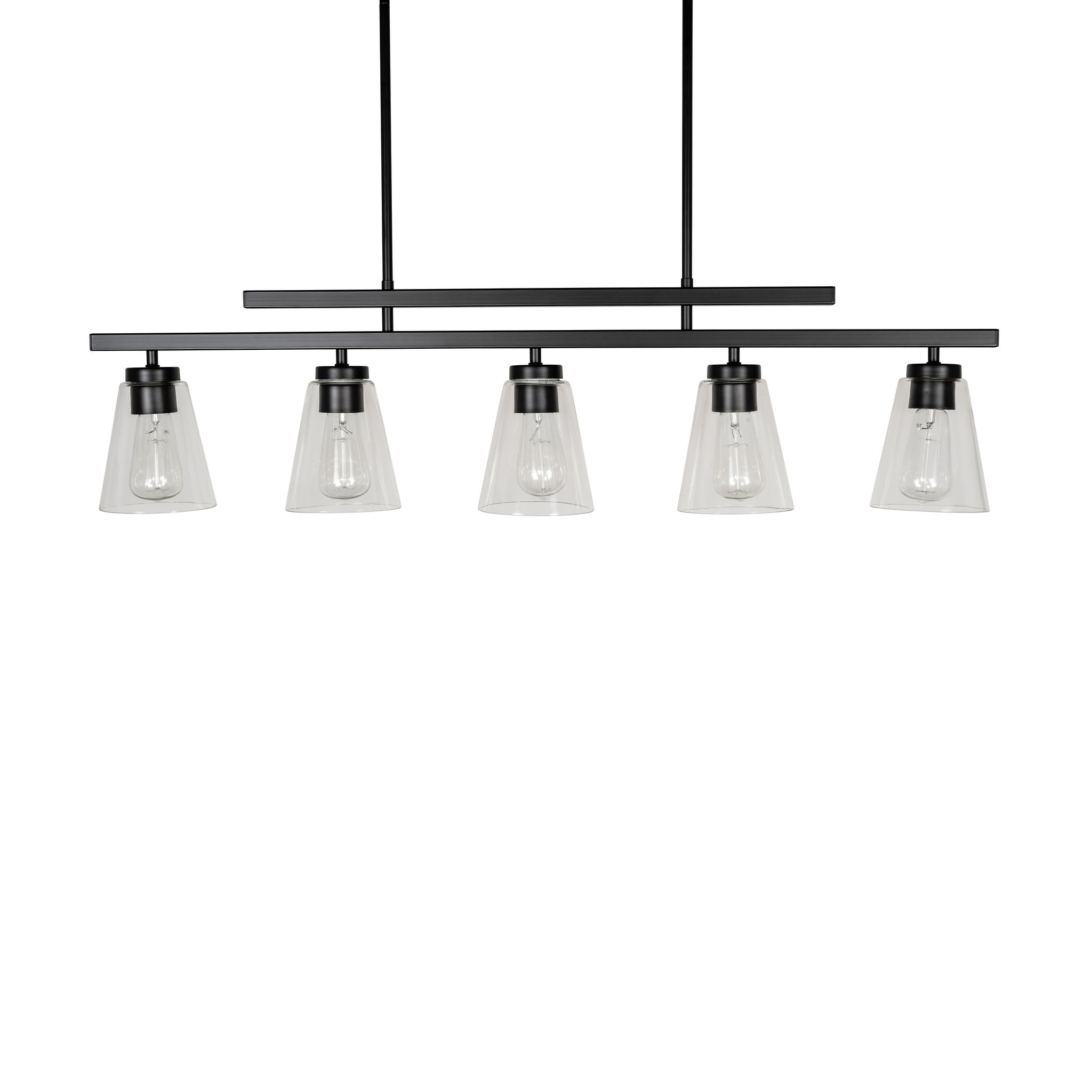Spire – 5 Light Linear Pendant in Black with Clear Glass