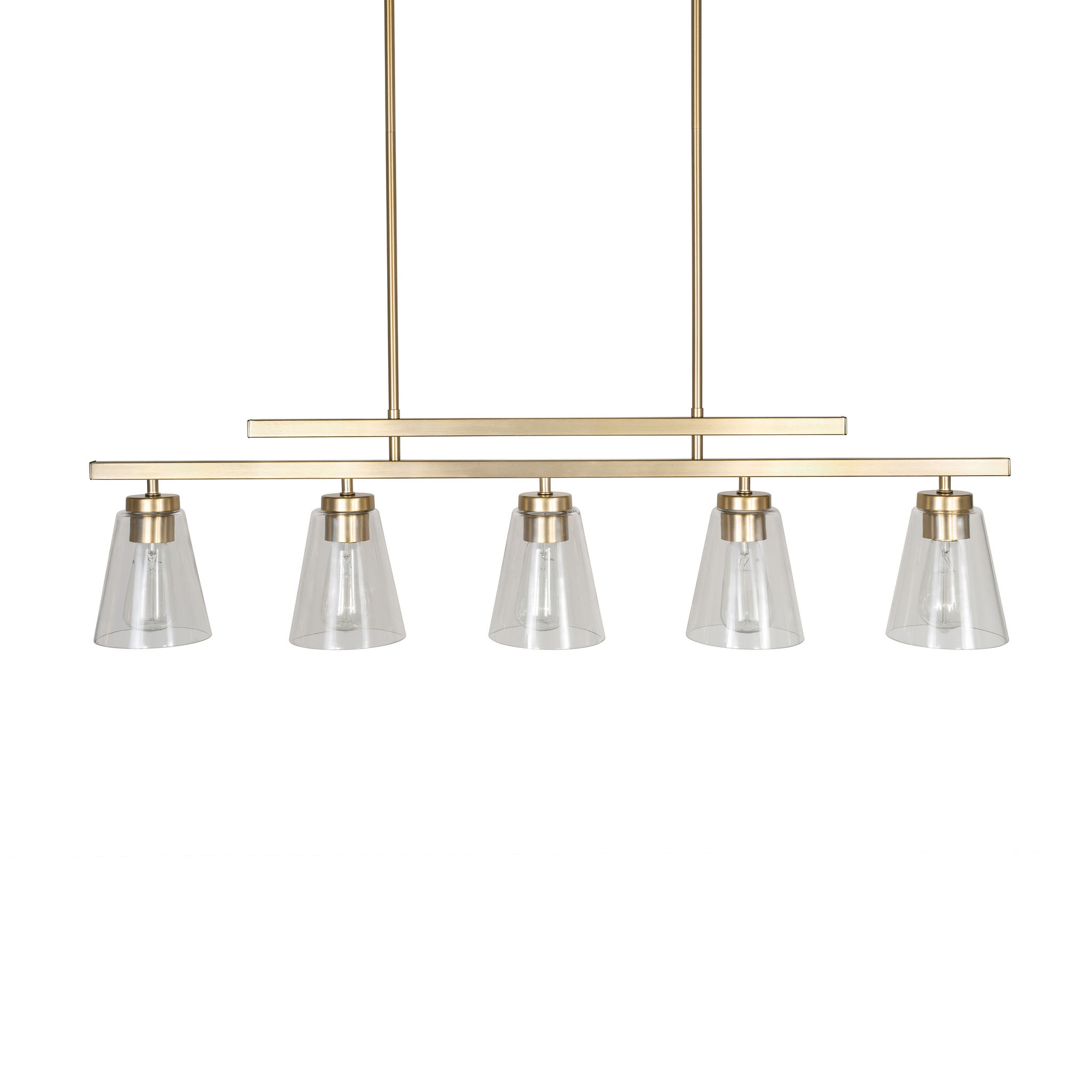 Spire – 5 Light Linear Pendant in Soft Gold with Clear Glass